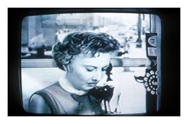Christian Marclay (*1955), Videostill auf einem Fernseher: Telephones, 1995,