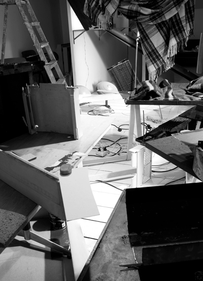 lacquered steel, closed: 80 x 62 x 7 cm, open: 197 x 62 x 112 cm