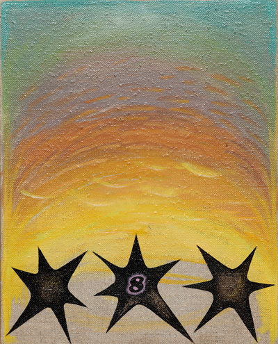 acrylic and lacquer on glass, 63 x 84 cm