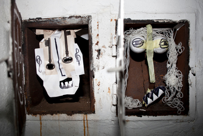 papier collé, acrylic paint, starch glue and wood, 100 x 75 x 65 cm