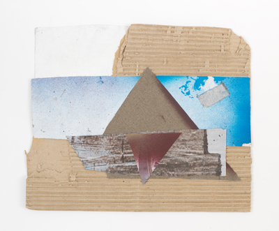 collage, oil paint on canvas on corrugated cardboard, 29 x 36 cm