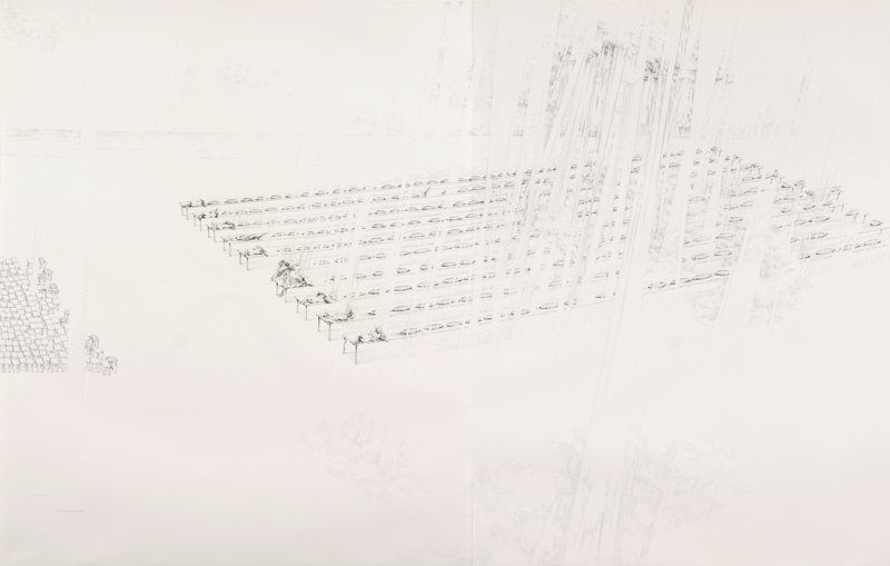 Chinese ink and pigment transfer on paper, 115 x 160 cm