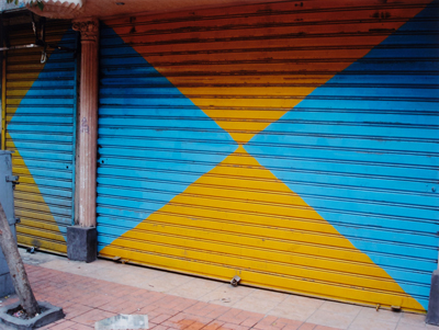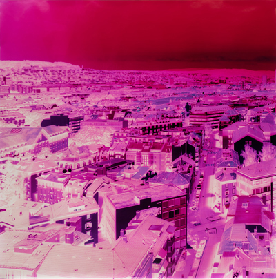 photograph on coloured paper, 35 min. exposure time, 182.9 x 180.2 cm