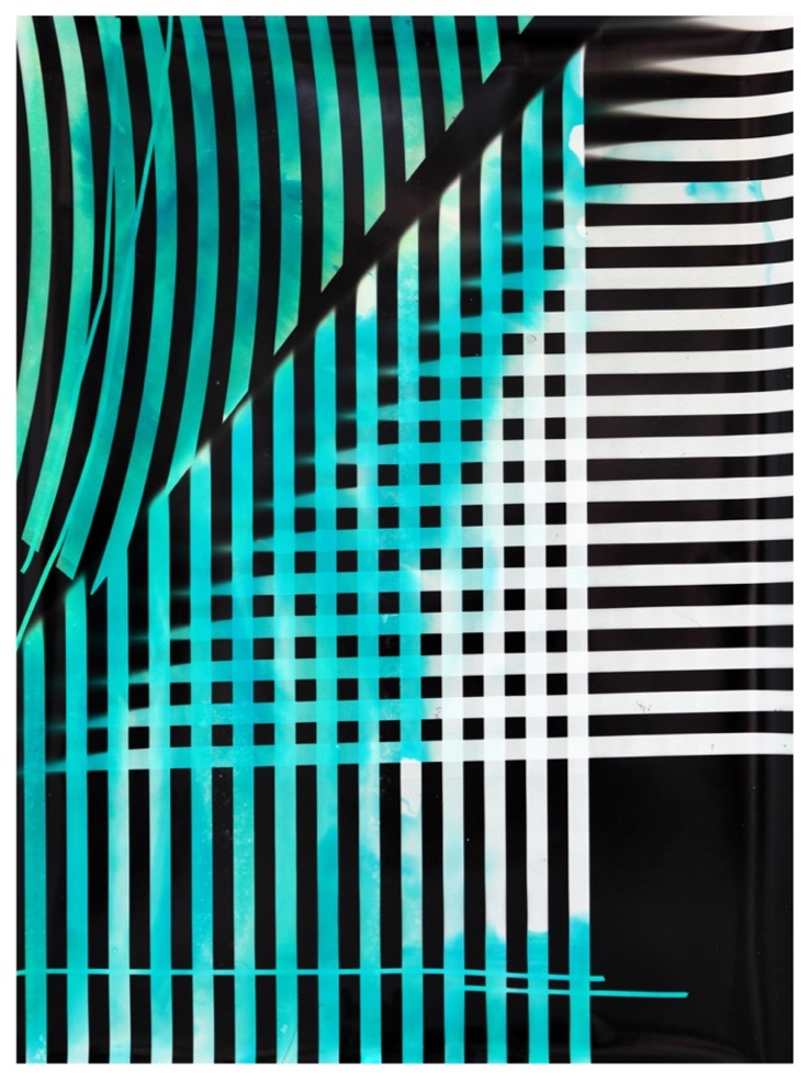 acrylic, lacquer on glass, 77 x 124 x 0.6 cm