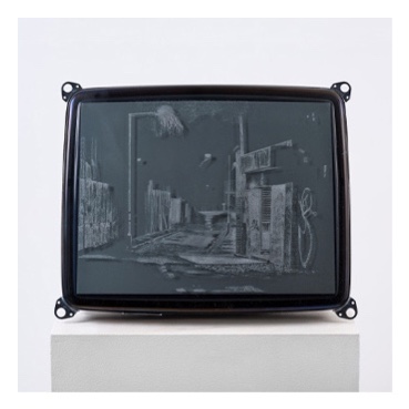 engraving on cathode ray tube, 31 x 38.5 x 37 cm