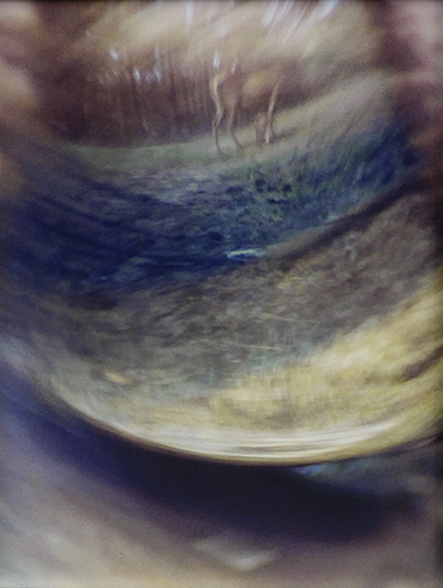 gel medium, nail polish and ink on PVC, 150 x 170 cm