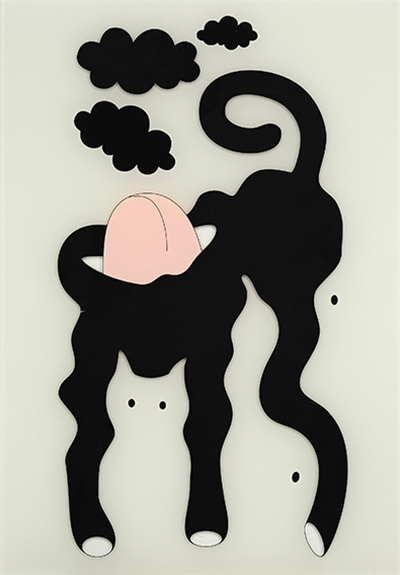 acrylic on blackboard paint on glass, 105 x 60 cm
