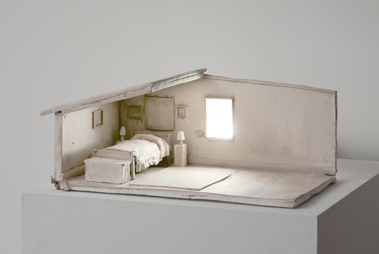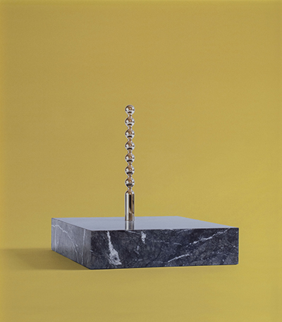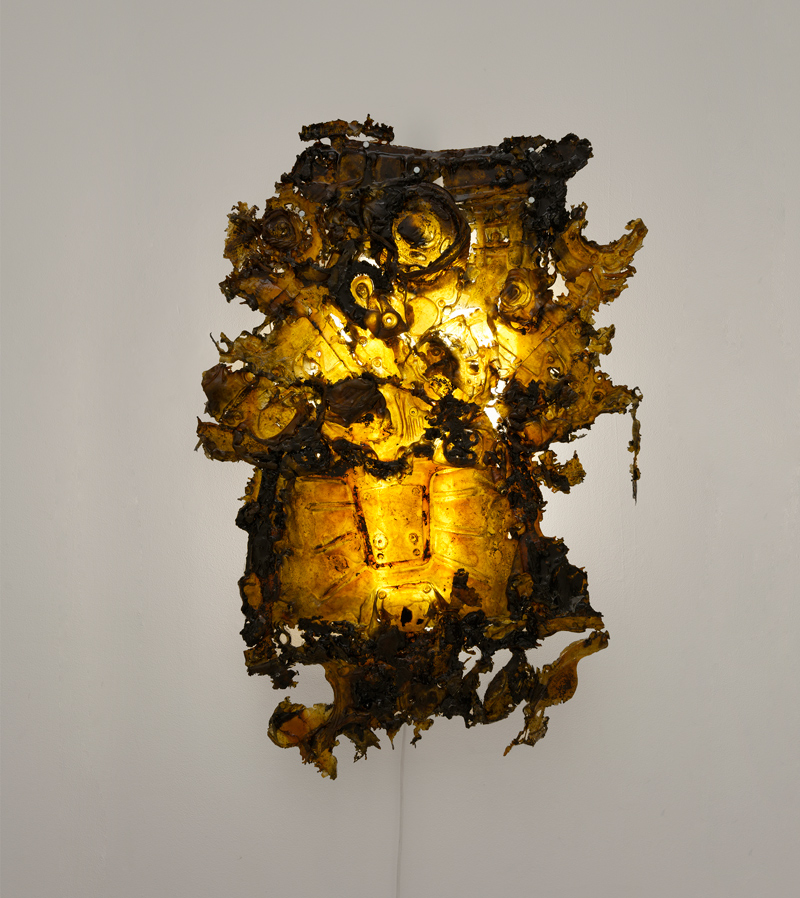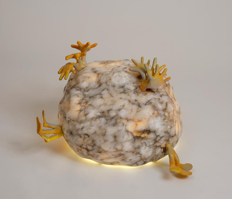 alabaster, polymer clay, spray paint and LEDs, 36 x 58 x 48 cm
