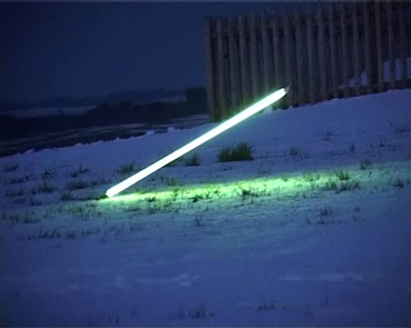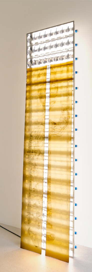 aluminium, fluorescent tubes, glass, latex, transfer printing, cables and ballast, 228 x 60 x 40 cm
