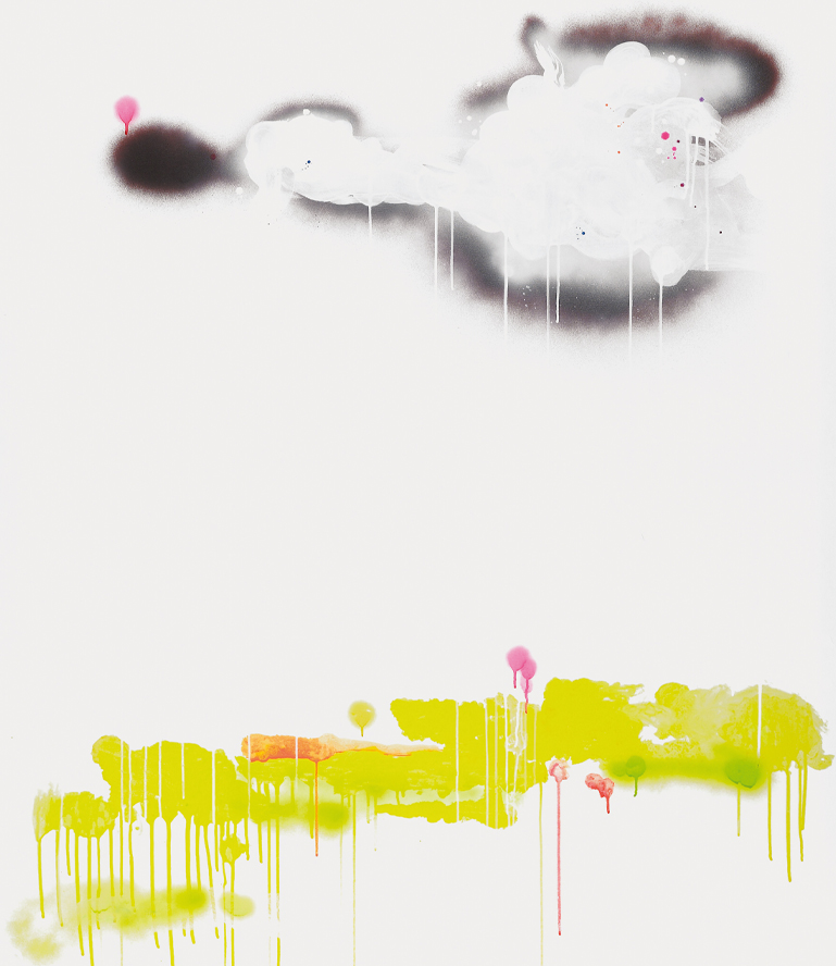 acrylic and fluorescent paint on cotton, 152 x 122 cm
