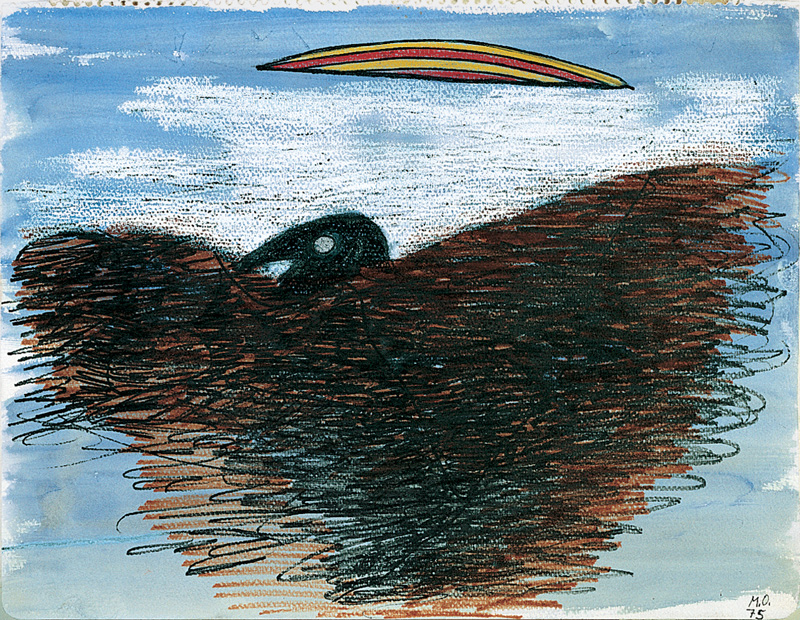 Meret Oppenheim (1913−1985), Geier und gelb-roter Gegenstand, 1975,
