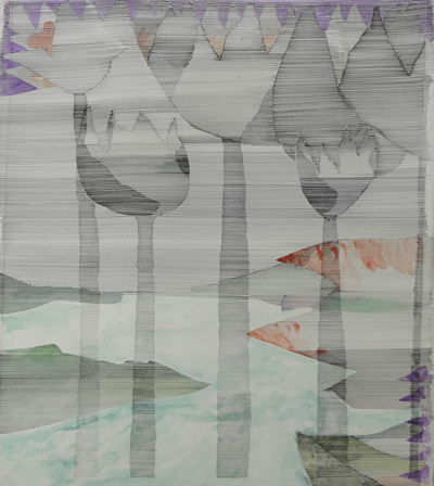 watercolour, pastel and charcoal on paper, 26 x 34 cm, © 2025, Pro Litteris, Zurich