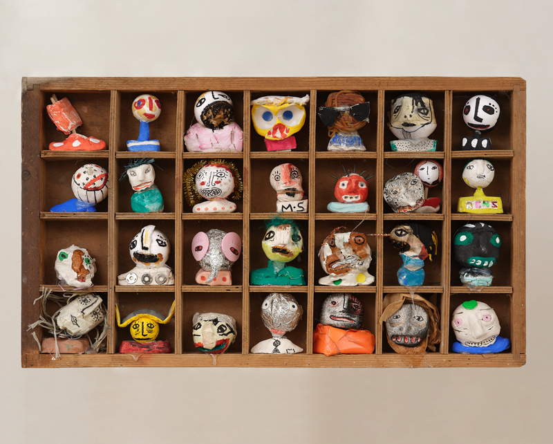 resin, airbrush painting, foam, Velcro, PVC and wigs, 85 x 40 x 40 cm